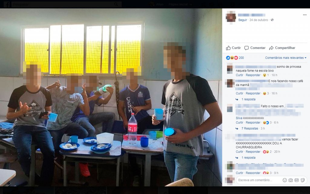 Após o professor de português faltar na terça-feira (24), alunos do terceiro ano do Colégio Estadual Menandro Minahim na cidade de Una resolveram esperar a próxima aula de uma forma peculiar. De acordo com o G1, com uma churrasqueira eletrônica, a turma resolveu assar carne e linguiça dentro da sala de aula, fazendo uma espécie de festinha com direito a música e todos os acompanhamentos tradicionais de churrasco. Fotos do ocorrido foram compartilhadas nas redes sociais dos estudantes que possuem idades entre 16 e 17 anos. De acordo com o vice-diretor do Colégio, Luciano de Melo Ramos, a instituição só descobriu o churrasco depois da postagem e os envolvidos foram suspensos. No momento em que a situação estava ocorrendo, o diretor em exercício estava ausente porque havia ido levar uma estudante ao atendimento médico emergencial. Na segunda (30), a direção se reunirá com os pais dos estudantes para definição de medidas educativas. Eles teriam se inspirado em um caso parecido que aconteceu em Goiás para planejar o churrasco. O Núcleo Territorial de Educação do Litoral Sul (NTE 05), com sede em Itabuna, vai apurar a possível responsabilidade dos servidores que estavam presentes na escola. Veja mais fotos: